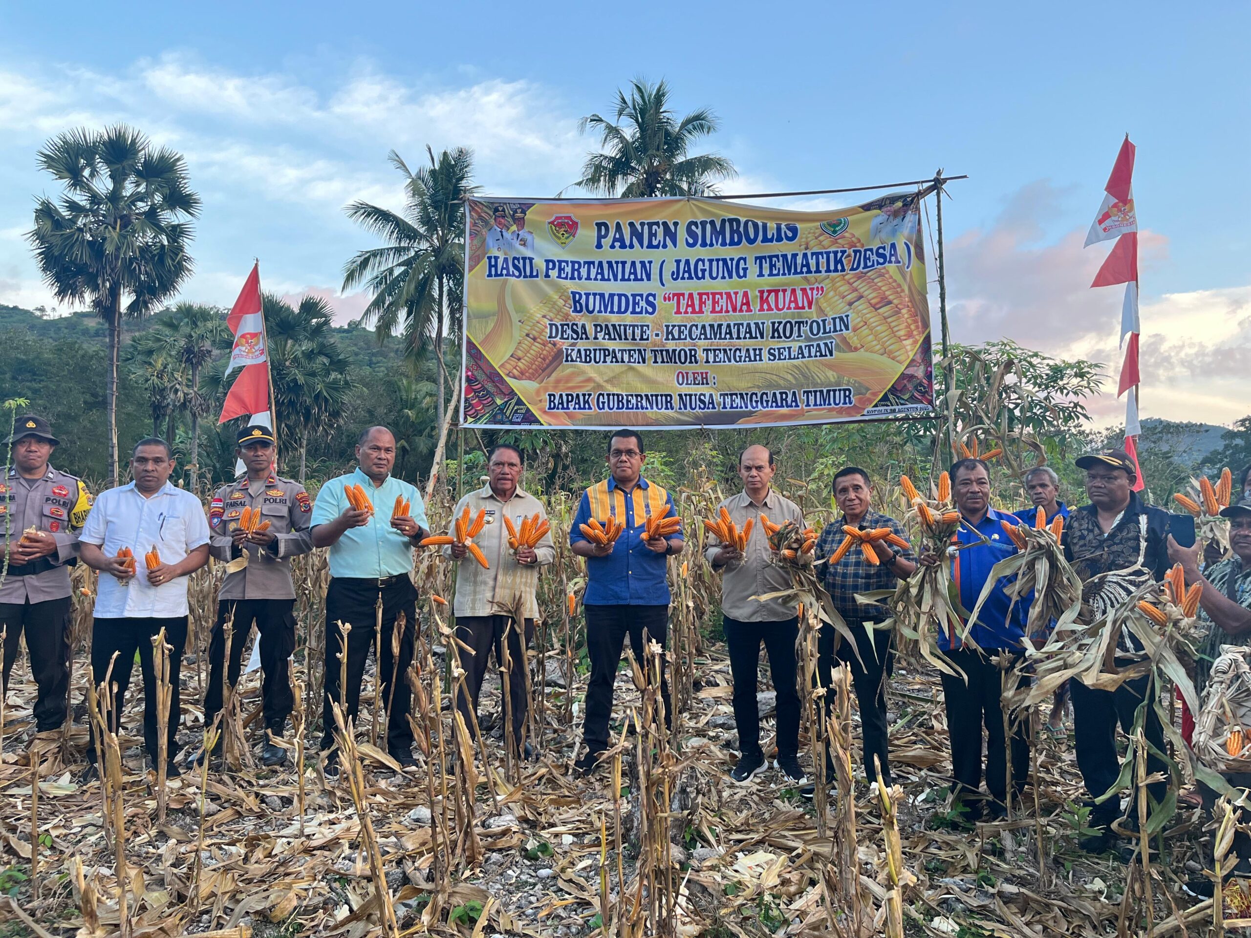 Kedatangan Gubernur NTT, Emanuel Melkiades Laka Lena bersama rombongan ini untuk menghadiri acara Panen Simbolis Hasil Pertanian (Jagung Tematik Desa) yang diselenggarakan oleh BUMDES Tafena Kuan.