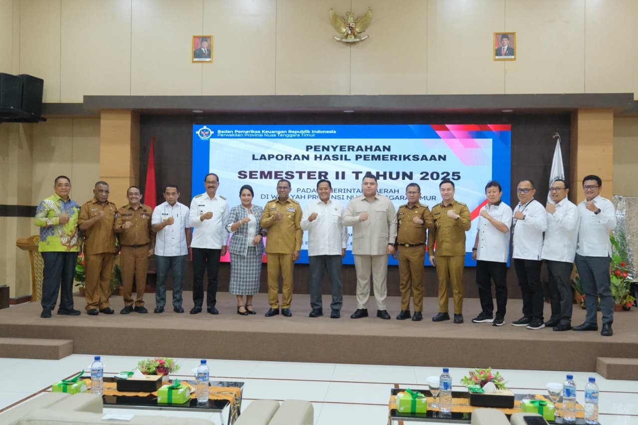 Badan Pemeriksa Keuangan Republik Indonesia (BPK RI) Perwakilan Provinsi Nusa Tenggara Timur menyerahkan Laporan Hasil Pemeriksaan (LHP) Kepatuhan atas Pengelolaan Pajak Daerah dan Retribusi Daerah (PDRD) Tahun 2024 sampai dengan Triwulan III Tahun 2025 kepada Pemerintah Provinsi Nusa Tenggara Timur dan instansi terkait. Kegiatan ini berlangsung di Aula Kantor BPK Provinsi NTT, Senin (12/1/2026) sore.