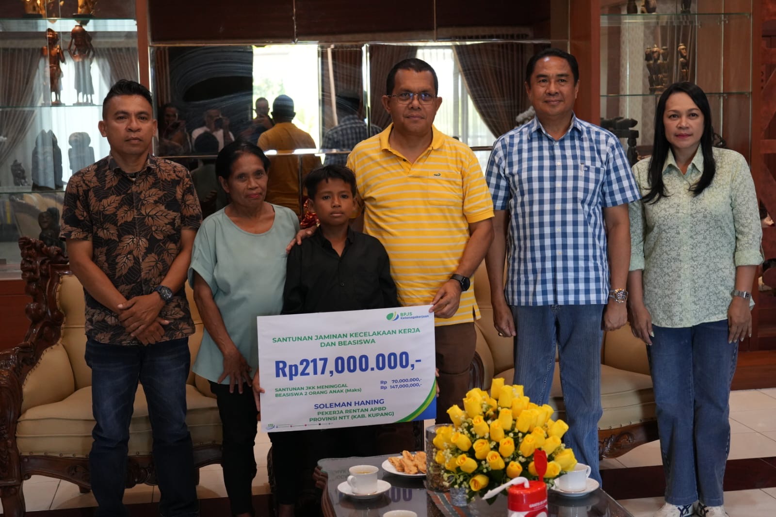 Gubernur Melki Laka Lena mengungkapkan, total manfaat yang diterima keluarga mencapai sekitar Rp217 juta. Nilai itu berasal dari skema perlindungan yang iurannya relatif kecil, yakni Rp16.800 per orang per bulan, namun memberikan manfaat besar saat risiko terjadi.